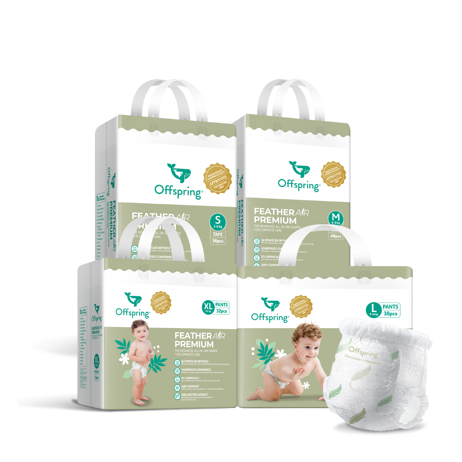 Offspring® FeatherAir Premium Diapers - 4 Pack Bundle
