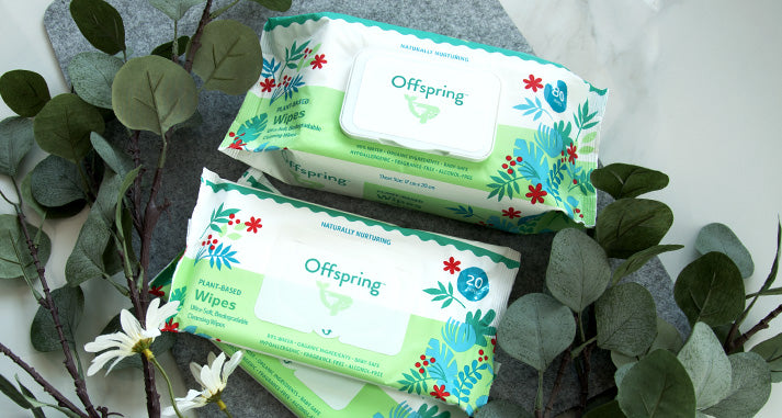 Offspring plant-based wipes are made with 99% water and organic-based ingredients. They're certified Australia Allergy, Made Safe & Toxic-Free, Cruelty-Free, and free of fragrances and masking agents. All scents come from the material and formulation itself.